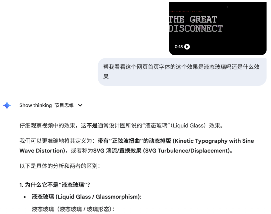 我把上面网页的录屏发给它,让它帮我看看首页字体的效果是什么。