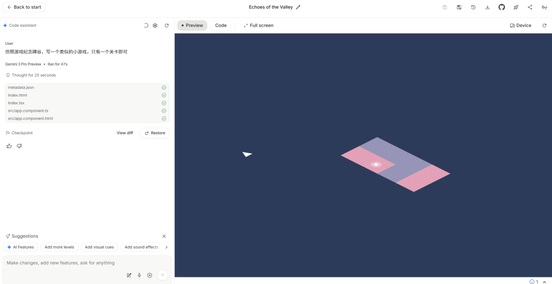 接着上了点难度,让它模仿纪念碑谷生成一个关卡即可。最后得到的页面纹丝不动如下: