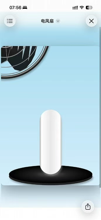 虽然细看仍有瑕疵,比如扇叶偶尔出模、转动略假,但整体表现非常惊艳:有质感的 UI 设计,出色的 3D 模型构建能力,风扇能摆头有档位,并且不同档的声音也不同。