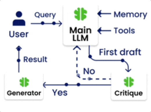 就像人类专家会反复检查自己的工作一样,自我反思智能体也会对自己的输出进行批评和改进。