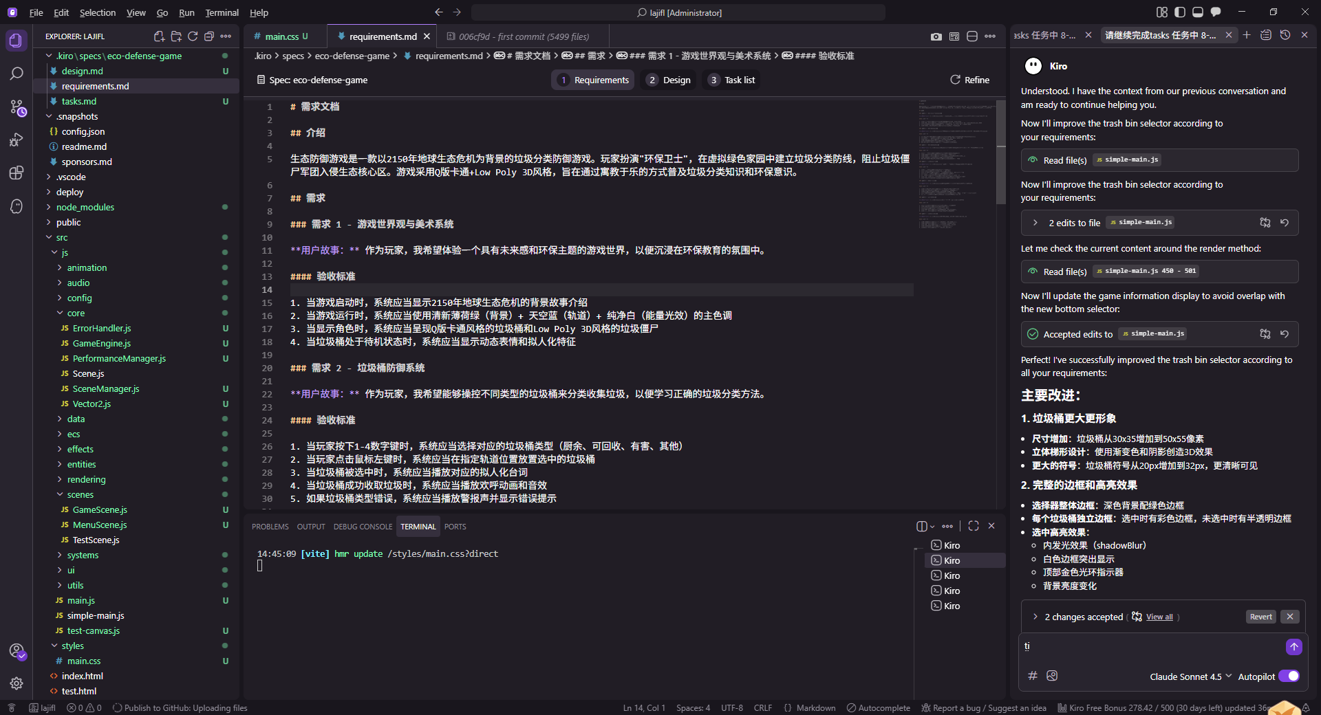 很多人觉得 “做环保”“做公益” 离自己很远,觉得那是大企业或专业人士的事。但这次用 Kiro 做游戏的经历让我明白:只要有想法,哪怕是个普通人,也能用身边的工具做些有意义的事。