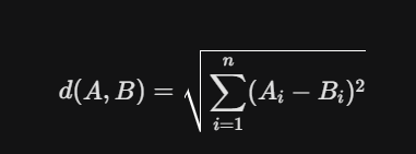这是最符合直觉的距离,即多维空间中两点之间的直线距离。