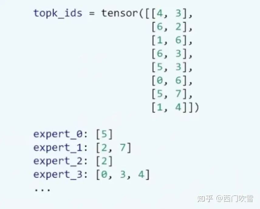 - 返回每个 token 的 top-k 专家的 ID 和对应的 topk_weights 代码实现还是和之前一样,只不过将 scores_for_choice 这个变量进行了 group 维度切分,即