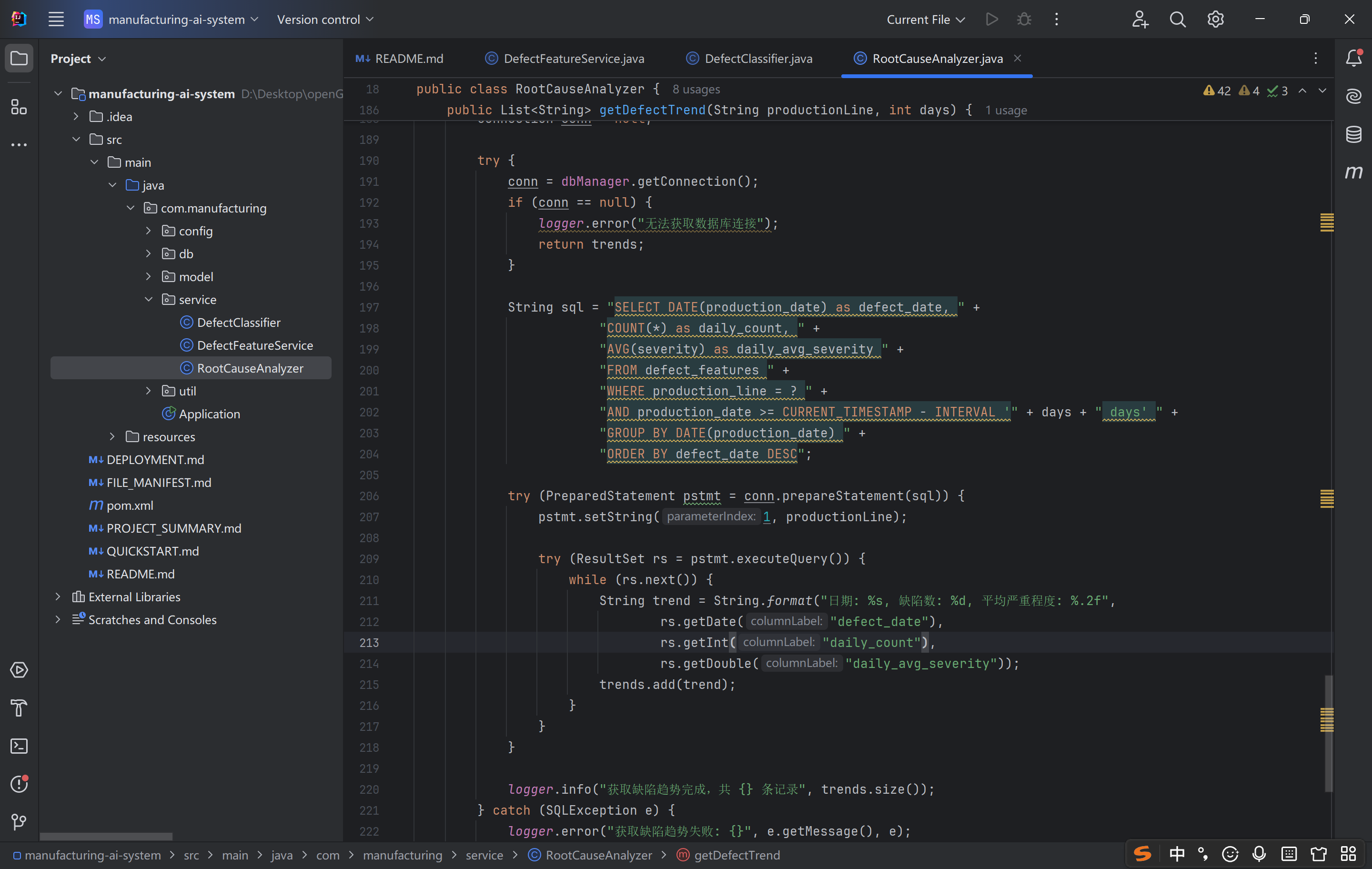 │ │ │ ├── DefectFeatureExtractor.java # 特征提取模块