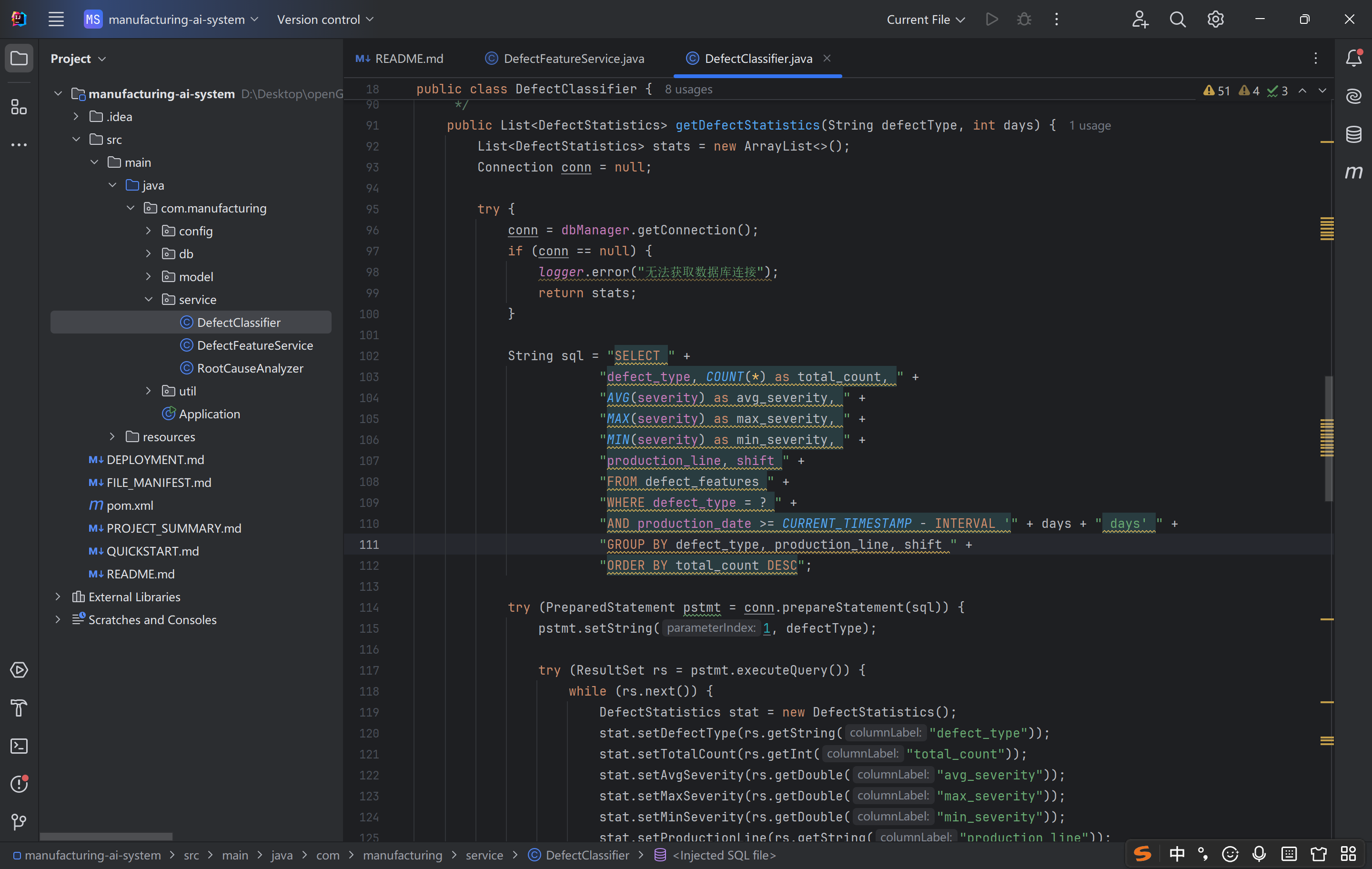 │ │ │ ├── DefectClassifier.java # 缺陷分类模块