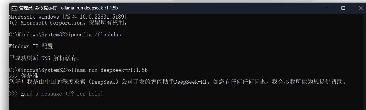 我这里由于之前以及下载好了直接就能对话,初次下载的可能要花一些时间等待模型下载