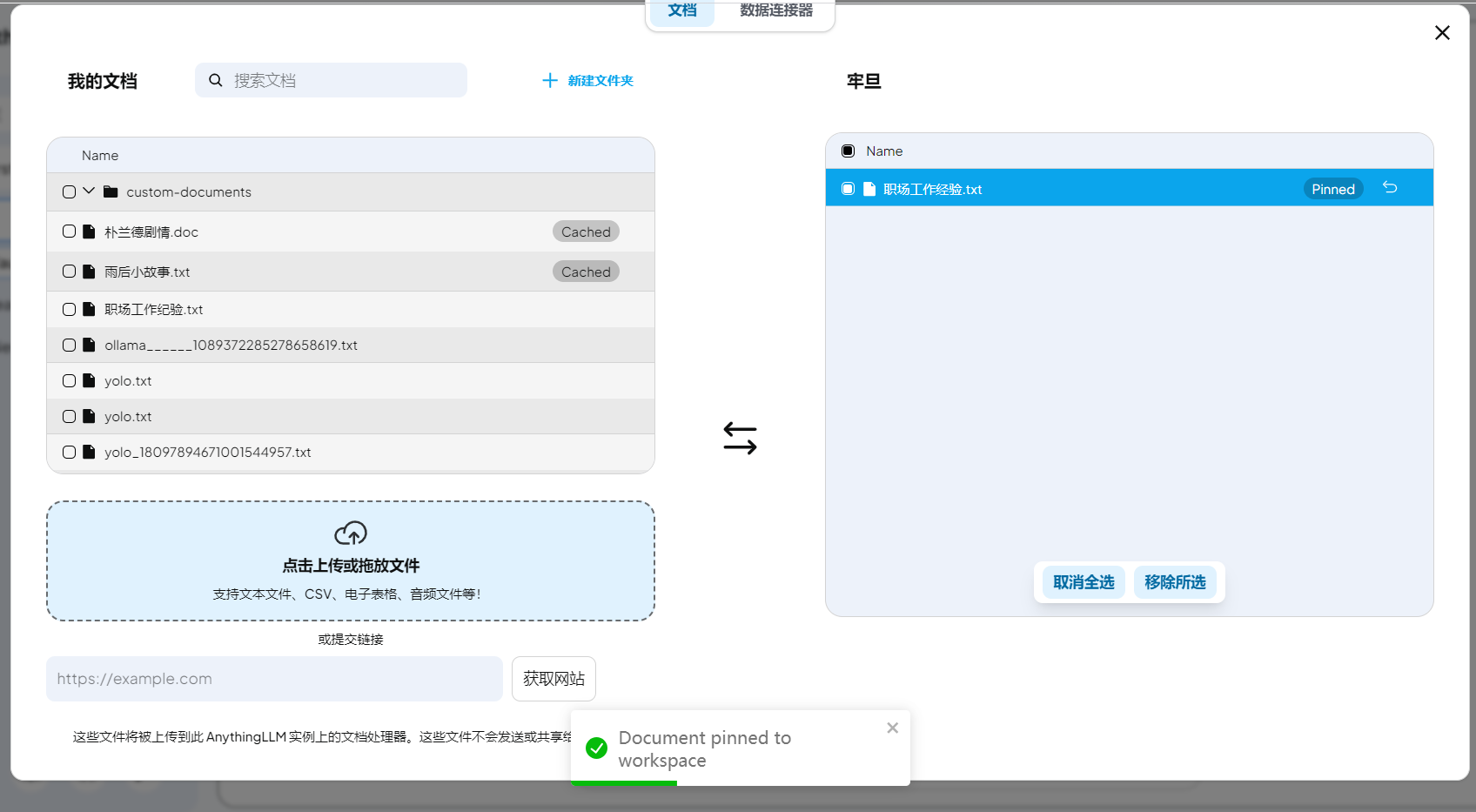 然后点击工作区传入文件旁边纺锤图案的annual,进行资料的固定,确保ai访问时能够直接访问到