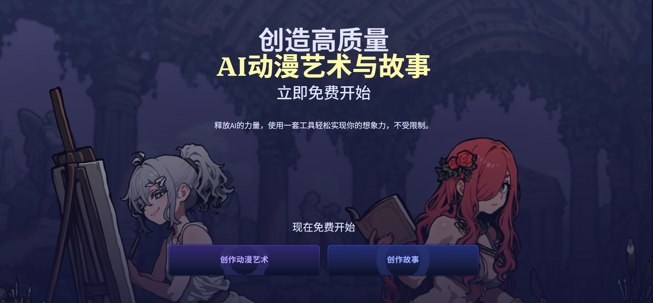 核心功能: AI绘画(特别是二次元风格)和故事续写。绘画能力是主业,写作是副业。