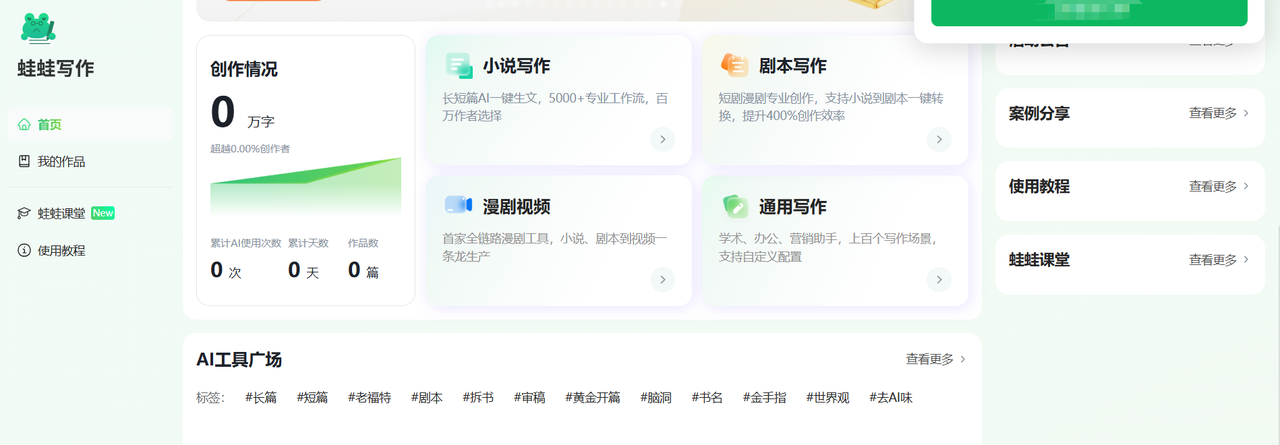 核心功能:纯粹的在线码字编辑器,内置了随机生成人名、地名等AI辅助小工具。