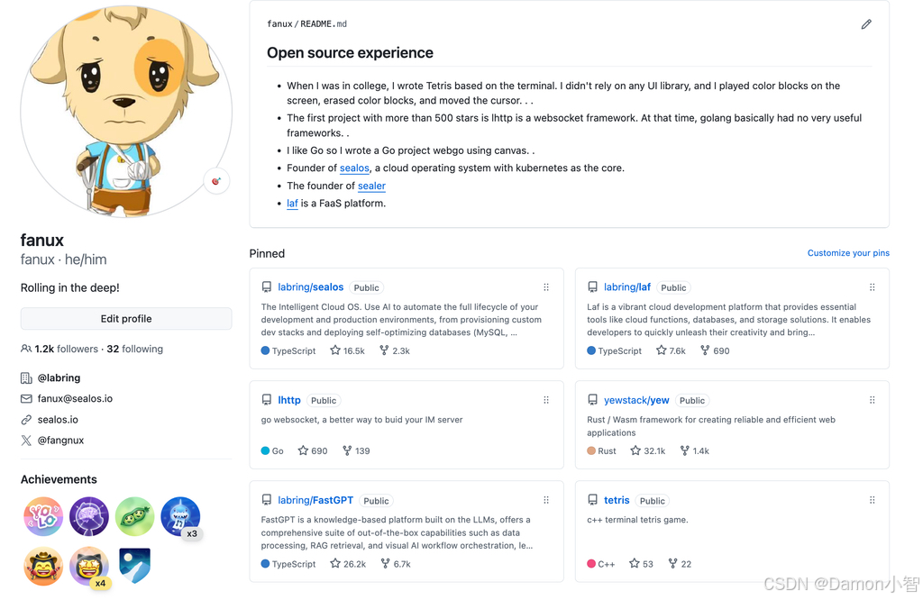 好吧,这一切就合理了,他是 Sealos fastgpt laf 的作者, 5000 star 以上项目 3个… 那能短时间搞出这个就不奇怪了。