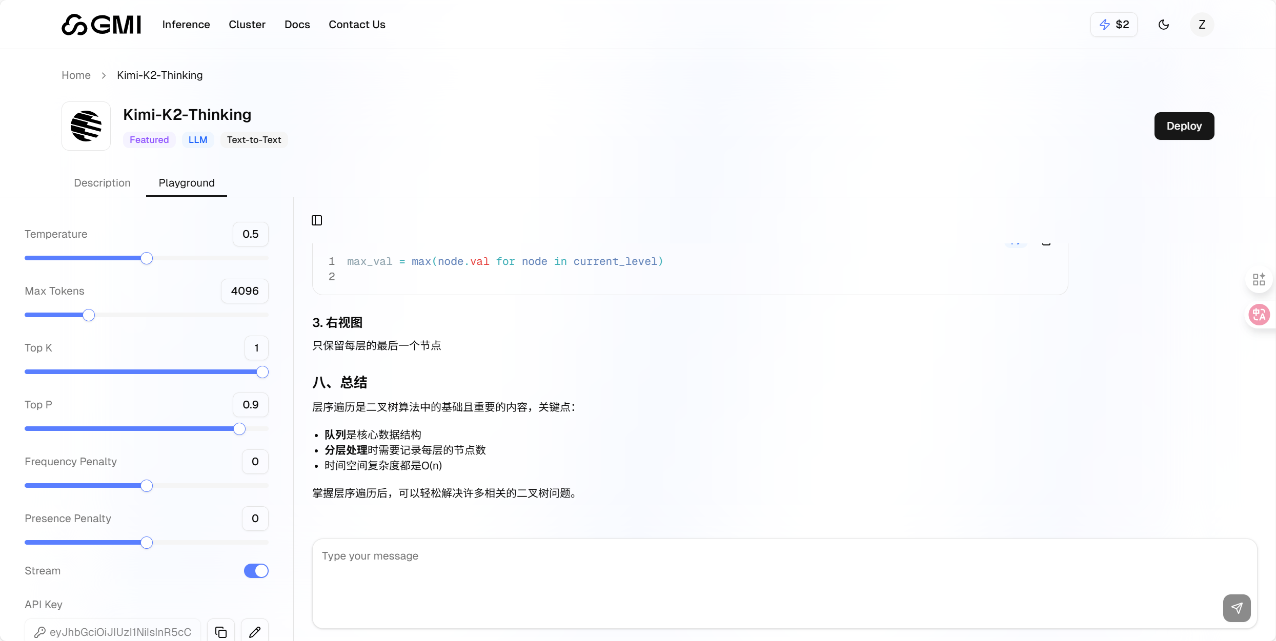 平台支持多种模型测试,此处以 Kimi-K2-Thinking 为例演示操作流程: