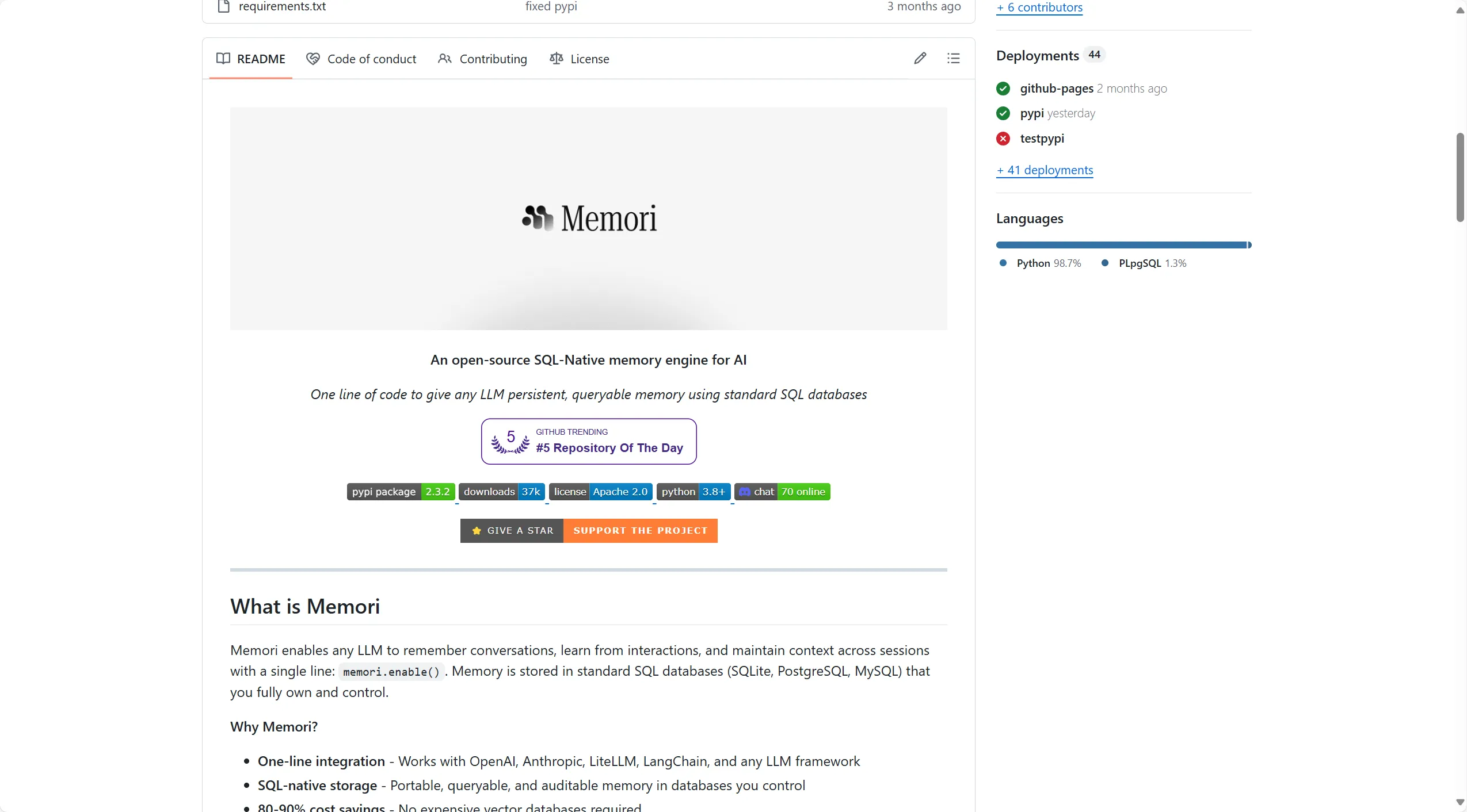 Github-Memori:为AI应用开启SQL原生记忆引擎的革命