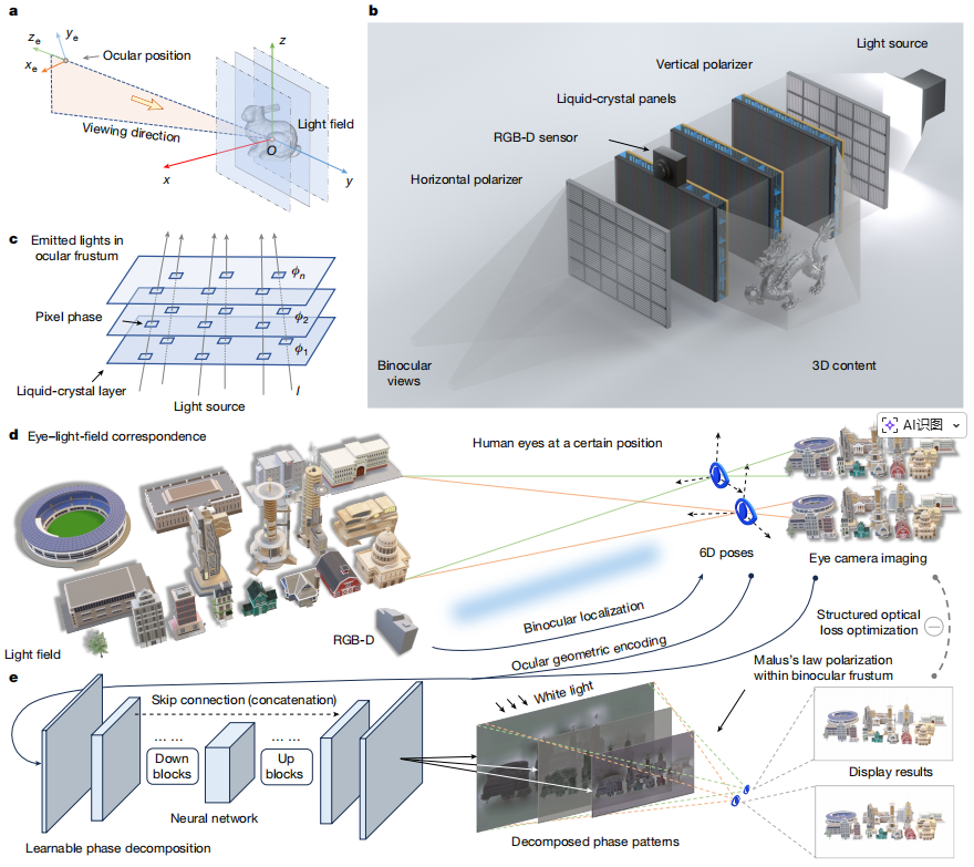 - 双目视觉物理模型: 团队首先精确构建了人眼观察的物理模型,通过眼部追踪技术实时捕捉观察者的6D位姿(位置和朝向)。