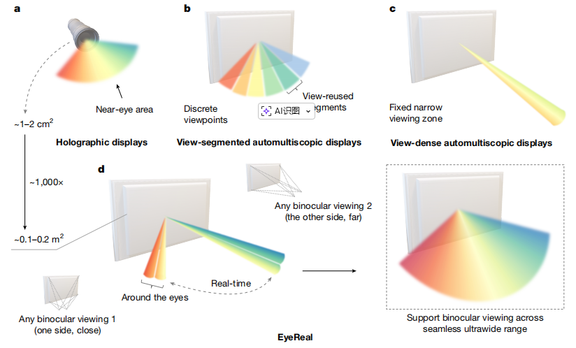 - vs 自动立体显示: 视场角从不足20°扩大5倍以上,并实现了全视差。