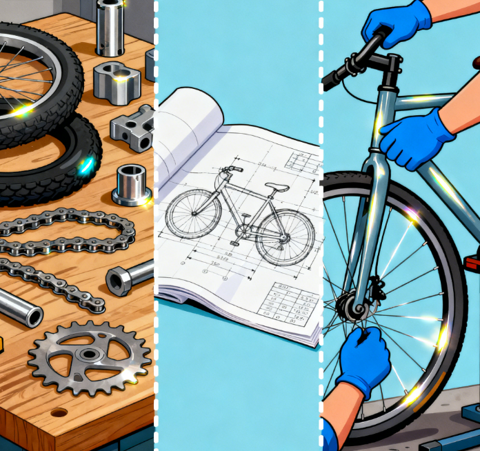 而从零训练就是从原材料和零件生产开始,设计完整的自行车结构,一步步组装所有部件,最终完全定制一辆适合你身高体重的自行车。
