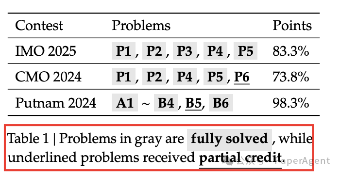 | IMO 2025 | 6 | 83.3 %(5 题全对 + 1 题部分) | 金牌线≈80 % |
