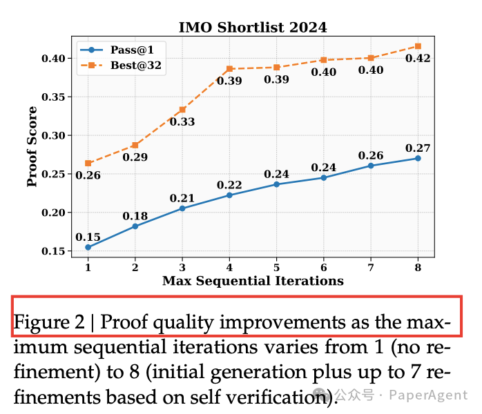 - IMO-Shortlist:允许最多 8 次迭代后,Best@32 提升 **+15 %**。
