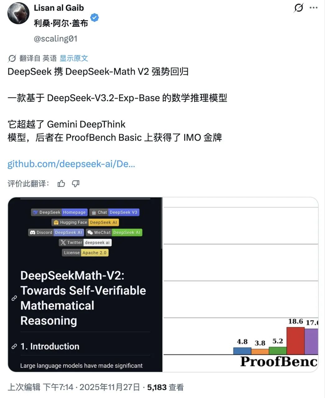 Deepseek发布新模型!DeepSeek-Math-V2:可自证数学推理的首个开源金牌模型!