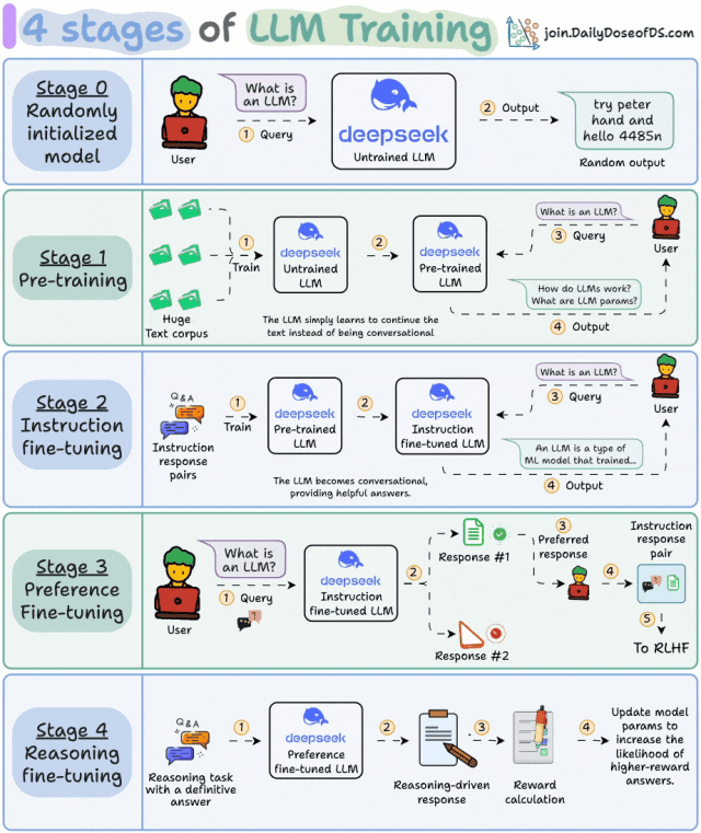 【程序员必学】大模型训练完整流程:从随机初始化到推理微调,一篇搞定!