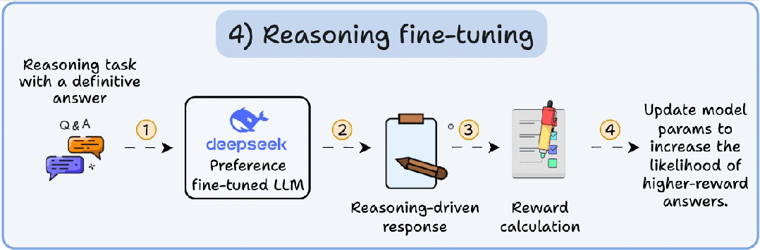 这被称为基于可验证奖励的强化学习(Reinforcement Learning with Verifiable Rewards)。DeepSeek 的 GRPO 是实现这一目标的一种常用技术。