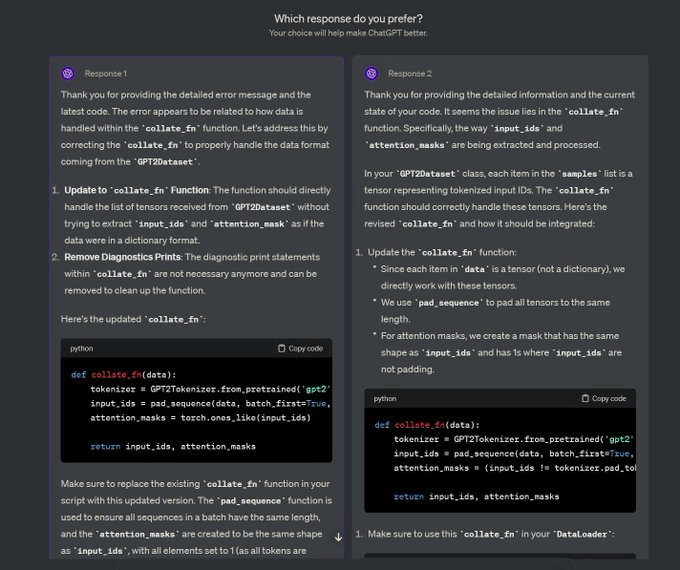 你一定在 ChatGPT 上看到过这个屏幕,它会问:你更喜欢哪种回复?