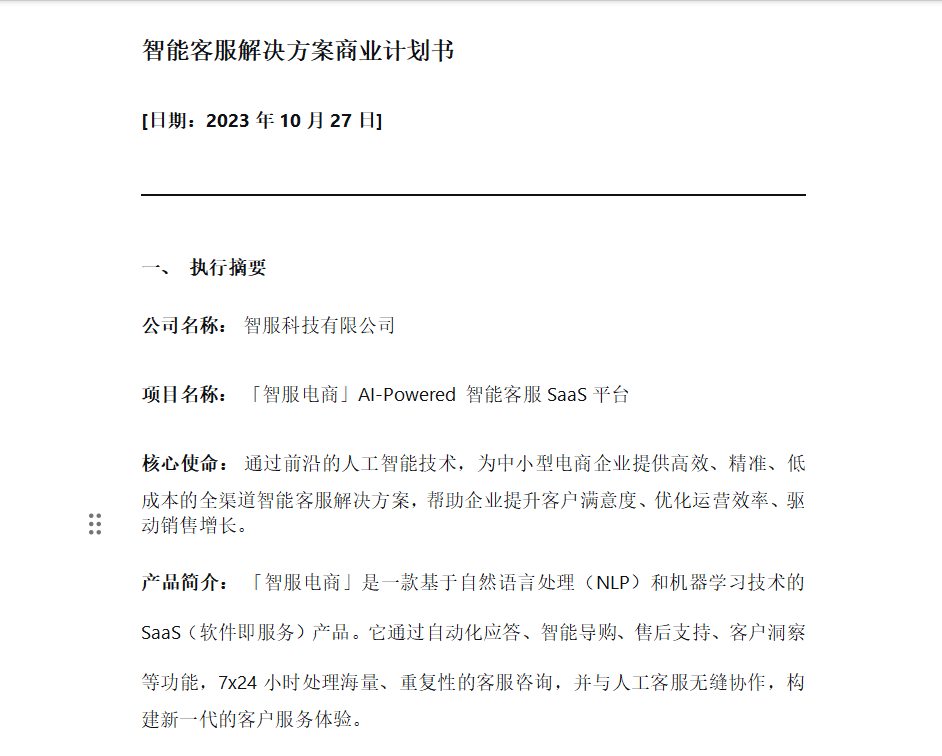 假如这是一份《智能客服解决方案商业计划书》(无涉敏数据)