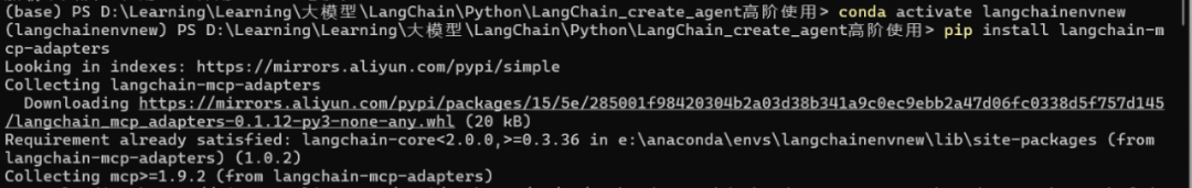 1. 环境安装与配置:首先确保 LangChain 环境已激活,然后安装 MCP 适配器依赖: