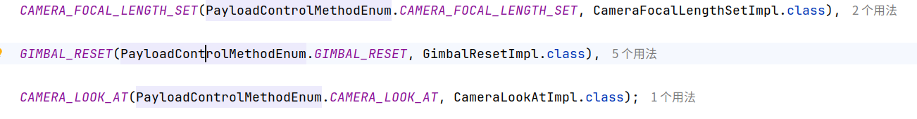 但是,如下图所示,cloud_api_sample_docker/cloud_api_sample/source/backend_service/sample/src/main/java/com/dji/sample/control/model/enums/PayloadCommandsEnum.java是大疆实际给出的实现方法,我们发现,最重要的云台控制方法,look_at函数没有给出实现,不只