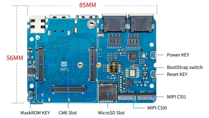 该公司没有提供载板的框图或原理图,但据我了解,五条 PCIe 通道的用途如下:一条用于一个千兆以太网端口,四条(2+2)用于 M.2 插槽。文档链接与 BPI-CM6 计算模块的文档链接相同。