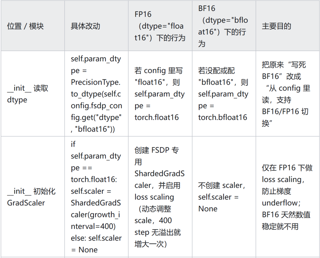 代码中将 BF16 训练改成 FP16,具体修改如下: