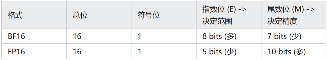 虽然 FP16 和 BF16 都使用总计 16 位,但它们的比特分配方式不同,因此在数值范围与精度之间体现出不同的权衡。