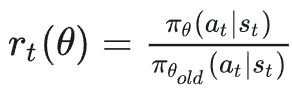 这里的 r_t 是 PPO 中的新旧策略比率,与 μ 无关。