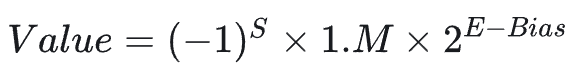 - 8位二进制能表示 0 ∽ 255。减去偏置值(Bias = 127),它的指数范围大约是 2^-126 ∽ 2^127。