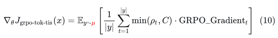 - 近似在线策略(Nearly On-policy):由于 mismatch 大幅降低,优化问题实际上被转化为了一个近似“在线策略(on-policy)”的设定(即训练策略 π 和推理策略 μ 数值上几乎一致)。