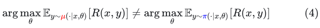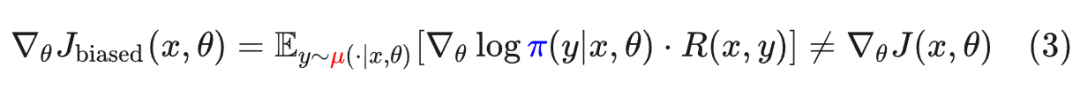 然而,在实际操作中,样本 y 是从推理策略 μ 中采样出来的。如果我们忽略这种不匹配,直接计算梯度,就会得到一个有偏梯度(Biased Gradient):