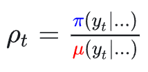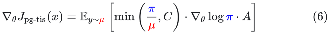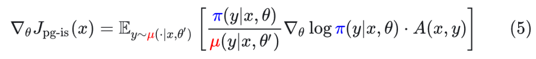 标准的重要性采样(IS),通过引入重要性权重 π/μ 来校正分布差异,使梯度重新变得无偏:
