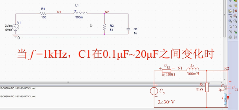 电源频率固定,电路中某个元件参数变化时,可以如下设置(这里电源频率f=1KHz,C1从0.1uF-20uF变化)