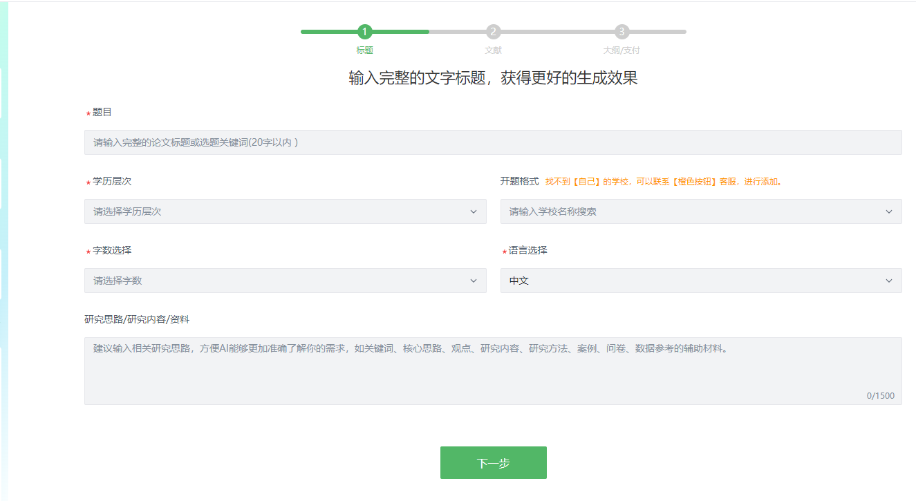 - 细节全兜底:标题不完整会提示 “需填完整标题”,研究类型选得模糊会建议 “精准选择(如‘实验研究’‘理论分析’)”,从源头避免后续大改。