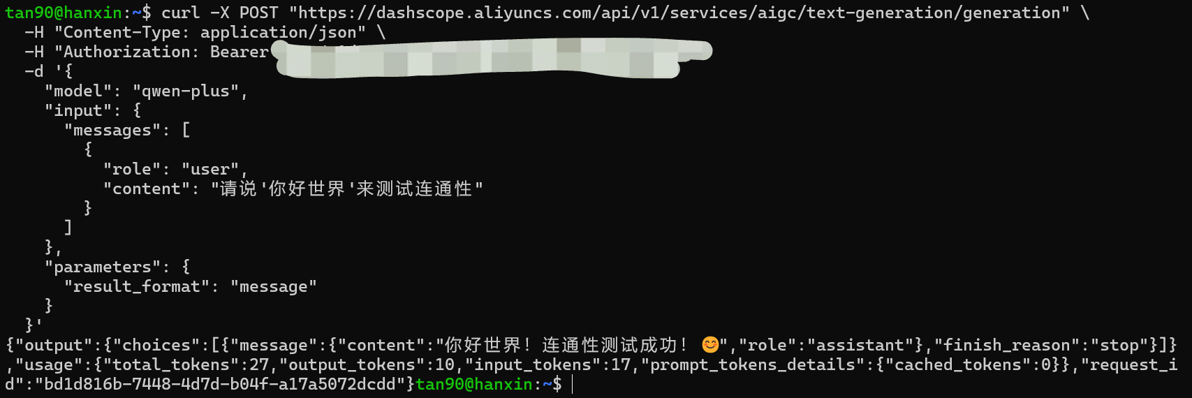 curl -X POST "https://dashscope.aliyuncs.com/api/v1/services/aigc/text-generation/generation" \