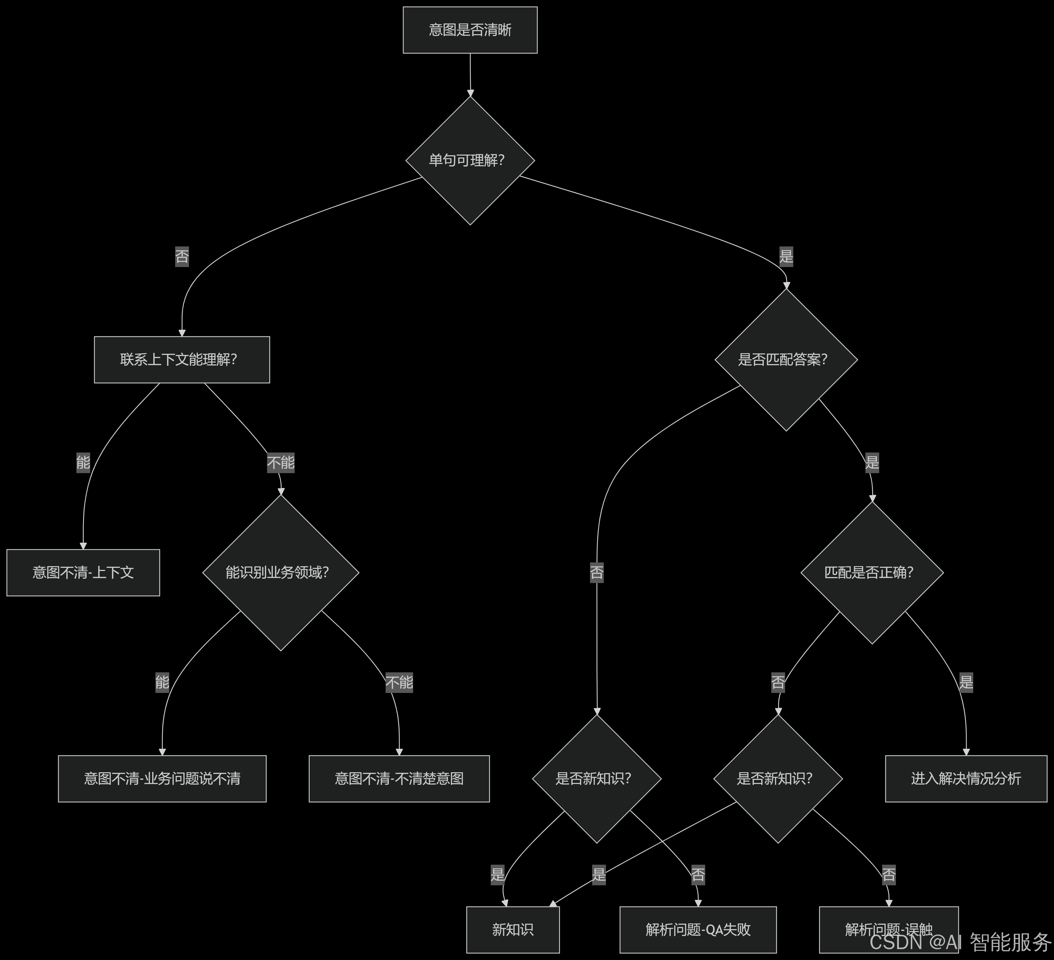 单句意图清晰度 → 上下文补充能力 → 业务定位能力 → 答案匹配机制