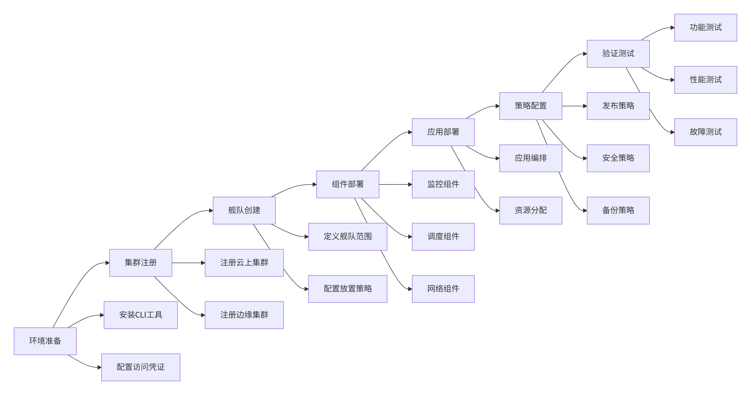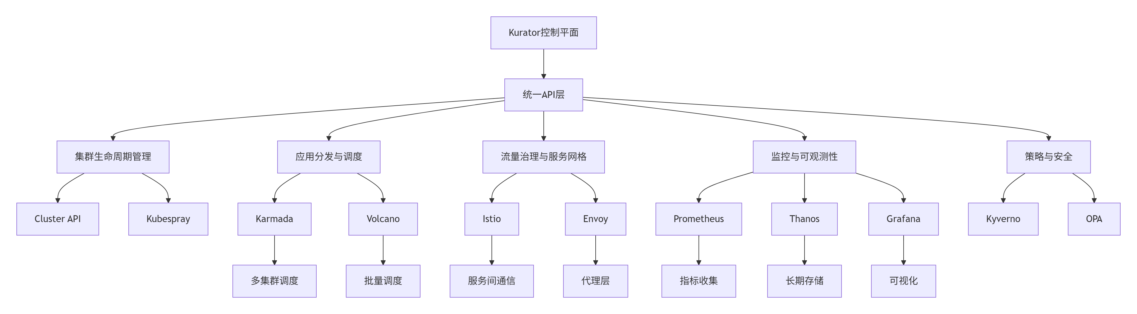 Kurator通过创新的"舰队"概念,将分散的云资源组织为逻辑统一的整体。其架构优势在于:提供跨云的统一资源视图,实现应用的一次定义、处处部署;通过标准化接口消除云平台差异;以及利用智能调度优化跨云资源分配。