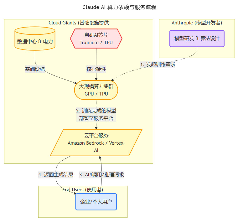 成本与定价权:云厂商的定价策略直接决定了Anthropic的训练和运营成本,进而影响Claude API的最终价格和市场竞争力。
