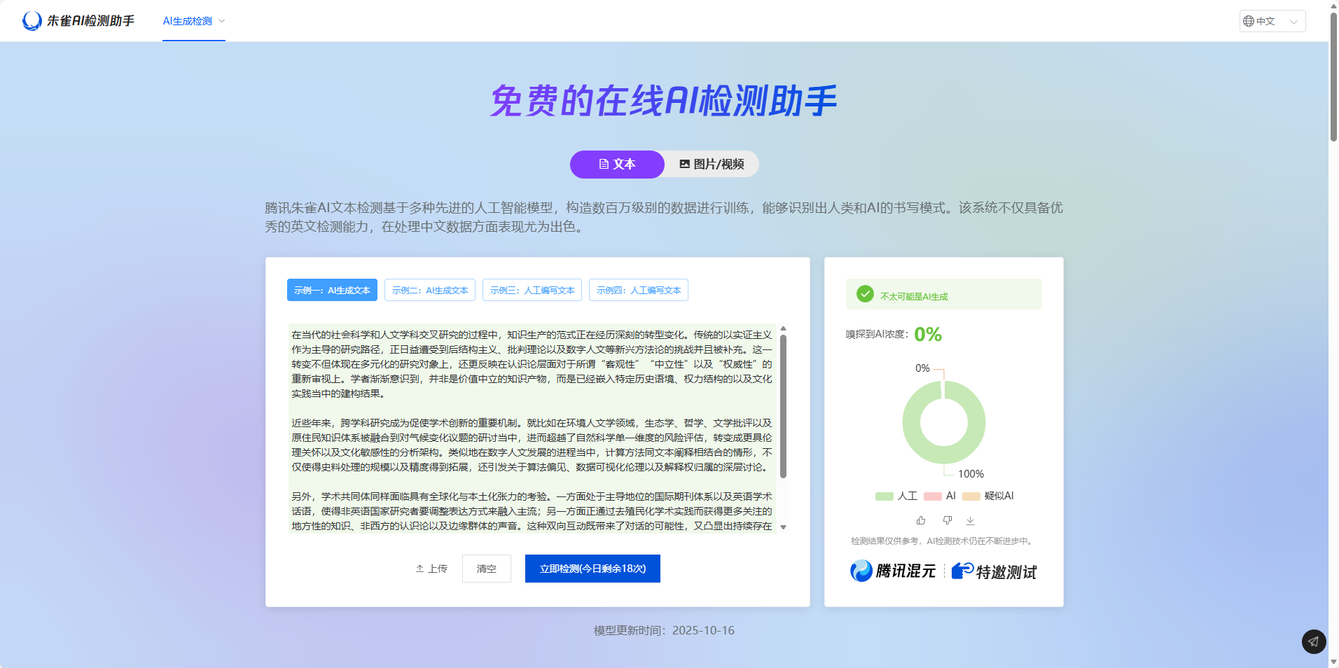 这段文字提交至主流AI检测平台(如朱雀),结果为100% AI生成。
