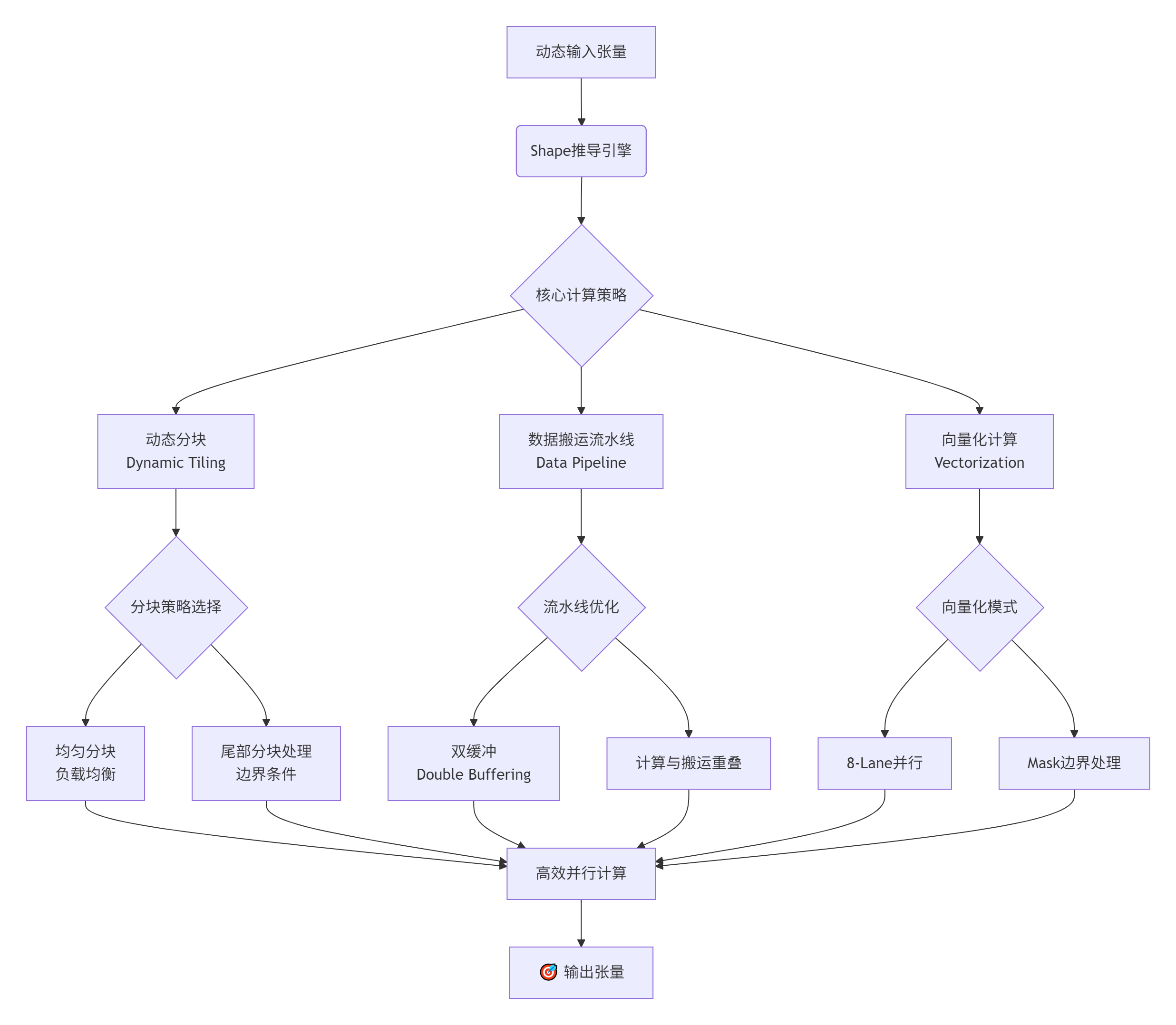 Ascend C通过其独特的编程模型,为我们提供了解决这些问题的强大武器。但要用好这些武器,需要一套精密的策略。下面这张图概括了我们征服动态Shape的核心技术路径: