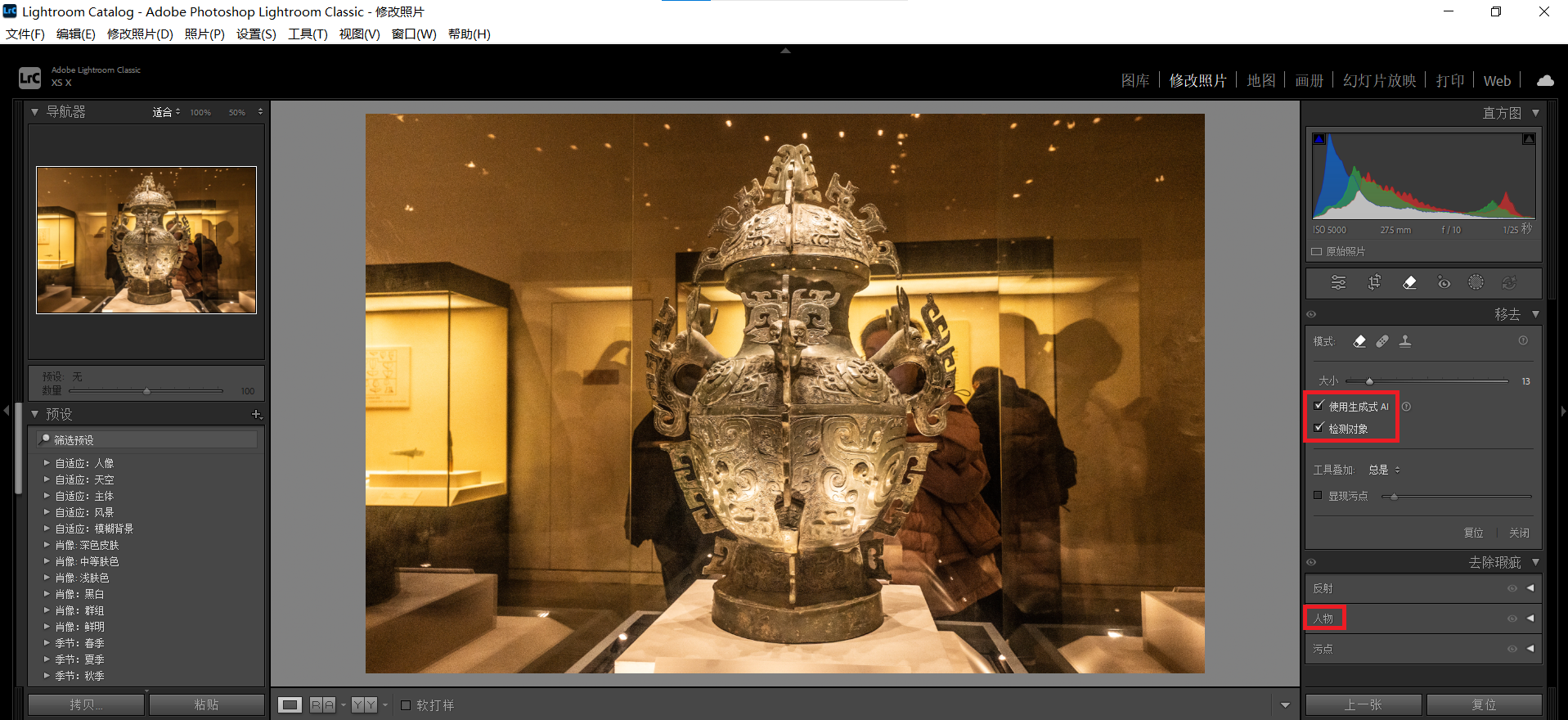 - 自动检测: 最便捷的方式是让AI自动识别照片中的人物。在AI功能面板中,通常会有一个“检测对象”或“选择主体”的选项。确保“人物”或相关的检测类别已被勾选(如下图示意)。点击此按钮后,AI会扫描整张图片,并用高亮框或蒙版自动标出它识别到的所有人物。