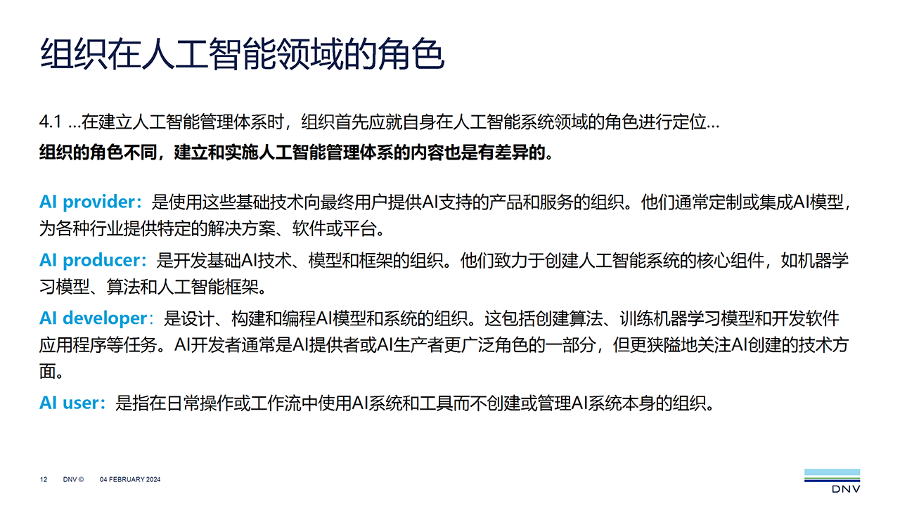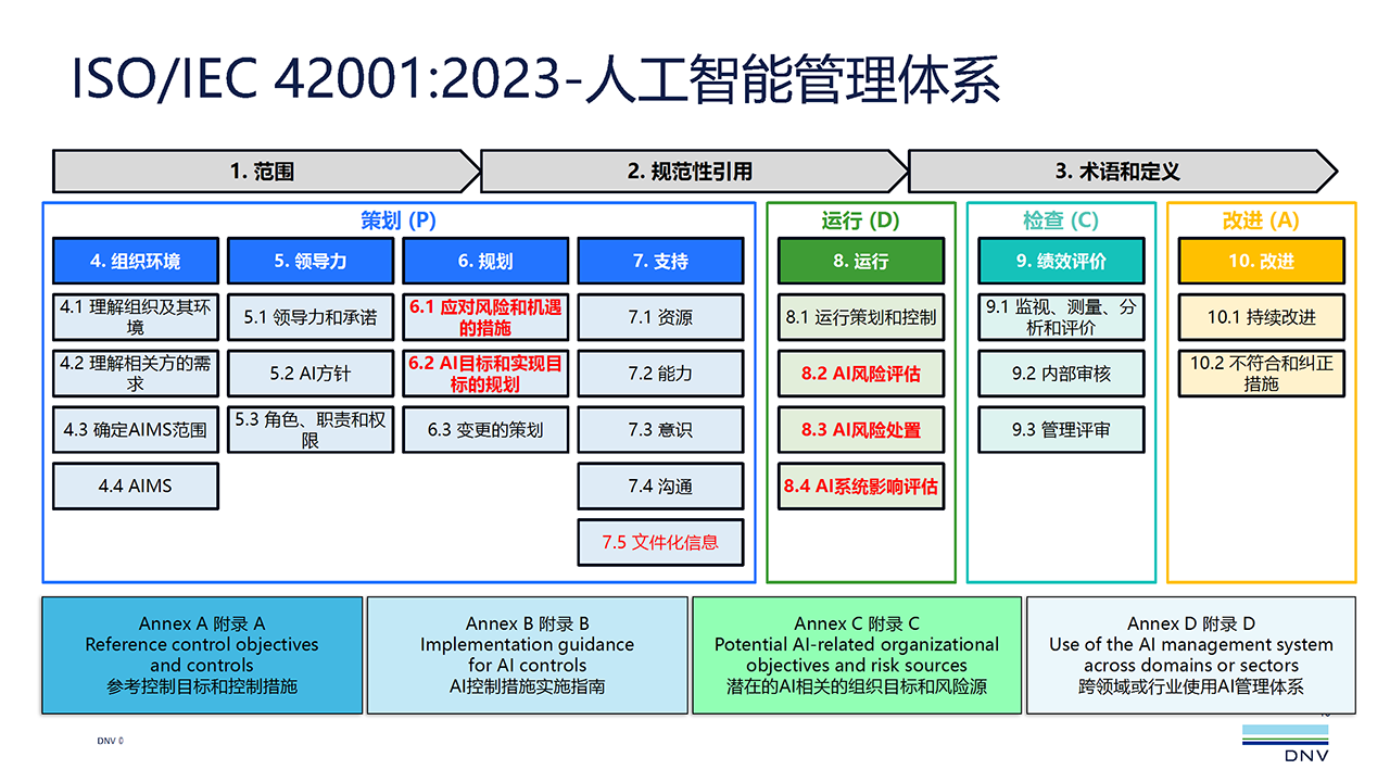 ISO/IEC 42001是首个国际上针对人工智能管理体系(AIMS)的标准,旨在帮助组织以负责任的方式开发、提供或使用AI系统 。