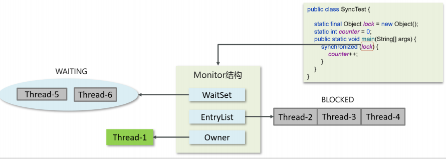 - EntryList:关联没有抢到锁的线程,处于Blocked状态的线程
