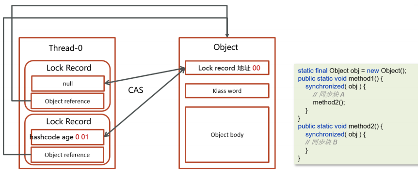 00,表示轻量级锁状态。 - 如果失败,表示存在竞争(另一个线程也修改了 Mark Word)。
