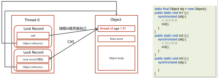 轻量级锁在没有竞争时(就自己这个线程),每次重入仍然需要执行 CAS 操作。