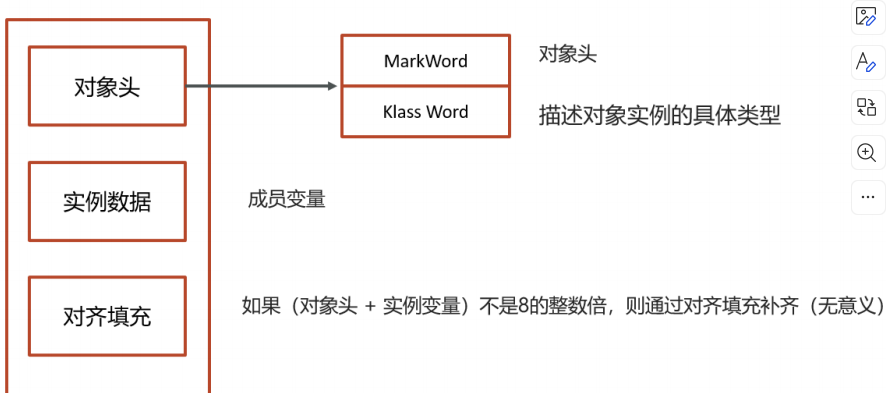 - Klass Pointer:对象指向它的类元数据的指针,虚拟机通过这个指针来确定这个对象是哪个类的实例。
